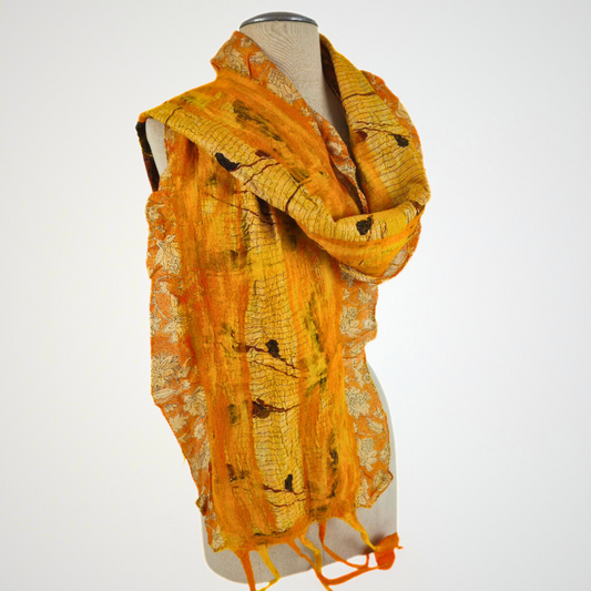 Merino Wool Tie Dye Felted Scarf-Mustard