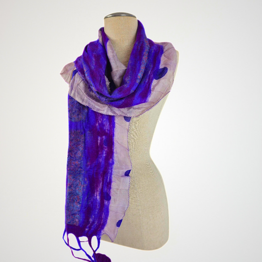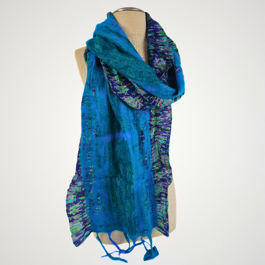 Merino Wool and Silk Sari Felted Scarf