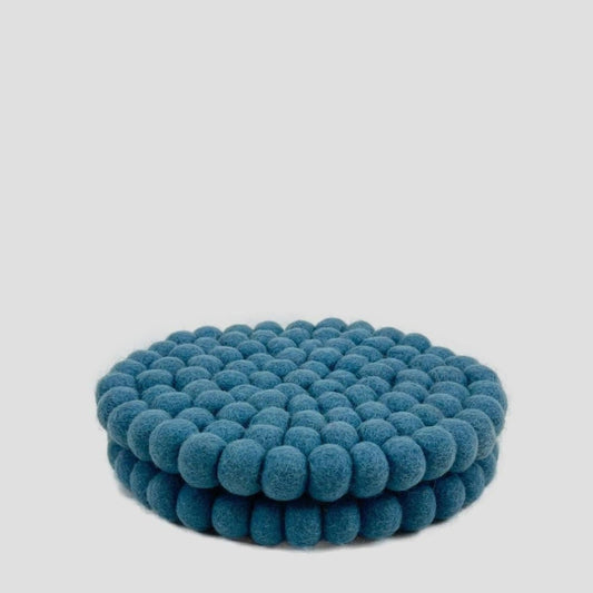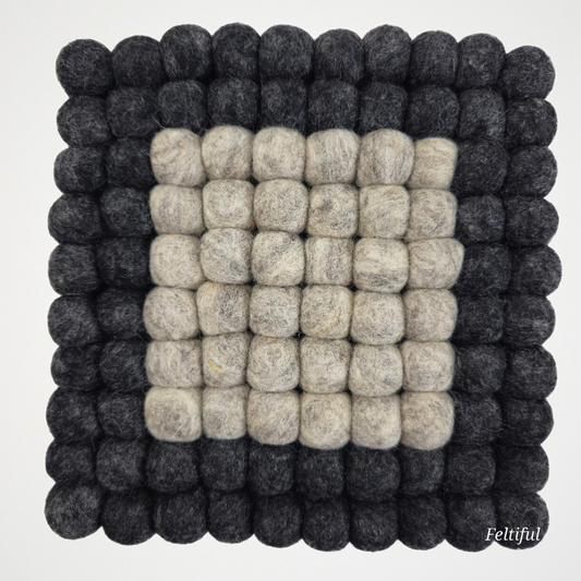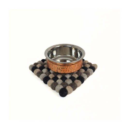Charcoal-Brown Pom Pom Felt Ball Trivet-Set Of 2Pcs.