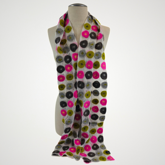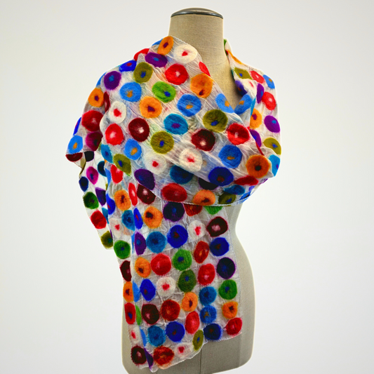 Multi Polka Dotted Merino Wool Felted Scarf