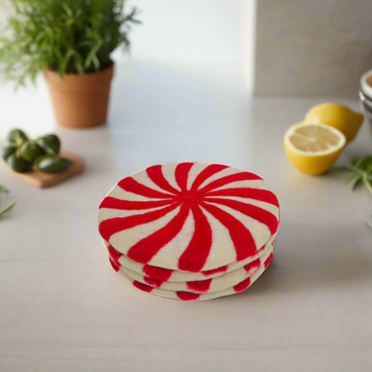 11mm Slice Candy Cut Pom Pom Felt Trivet-Set Of 2Pcs.
