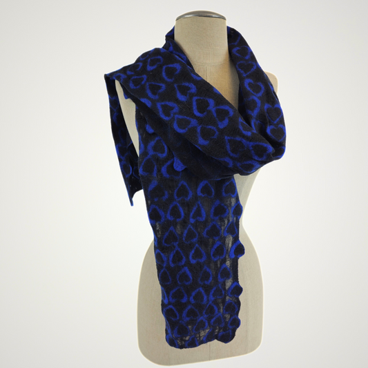 Merino Wool & Silk Felted Blue Heart Scarf