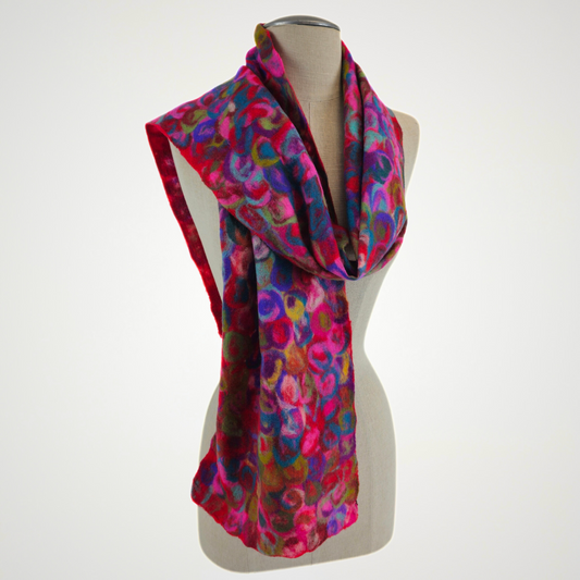 Multi color Merino Wool & Silk Felted Scarf