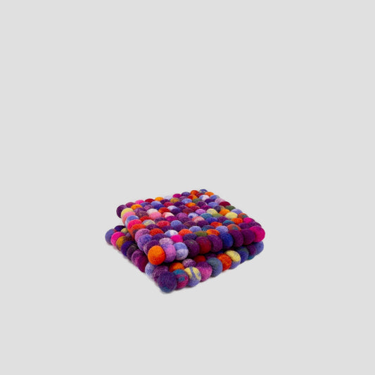 Multi Natural Pom Pom Felt Ball Trivet-Set Of 2Pcs.