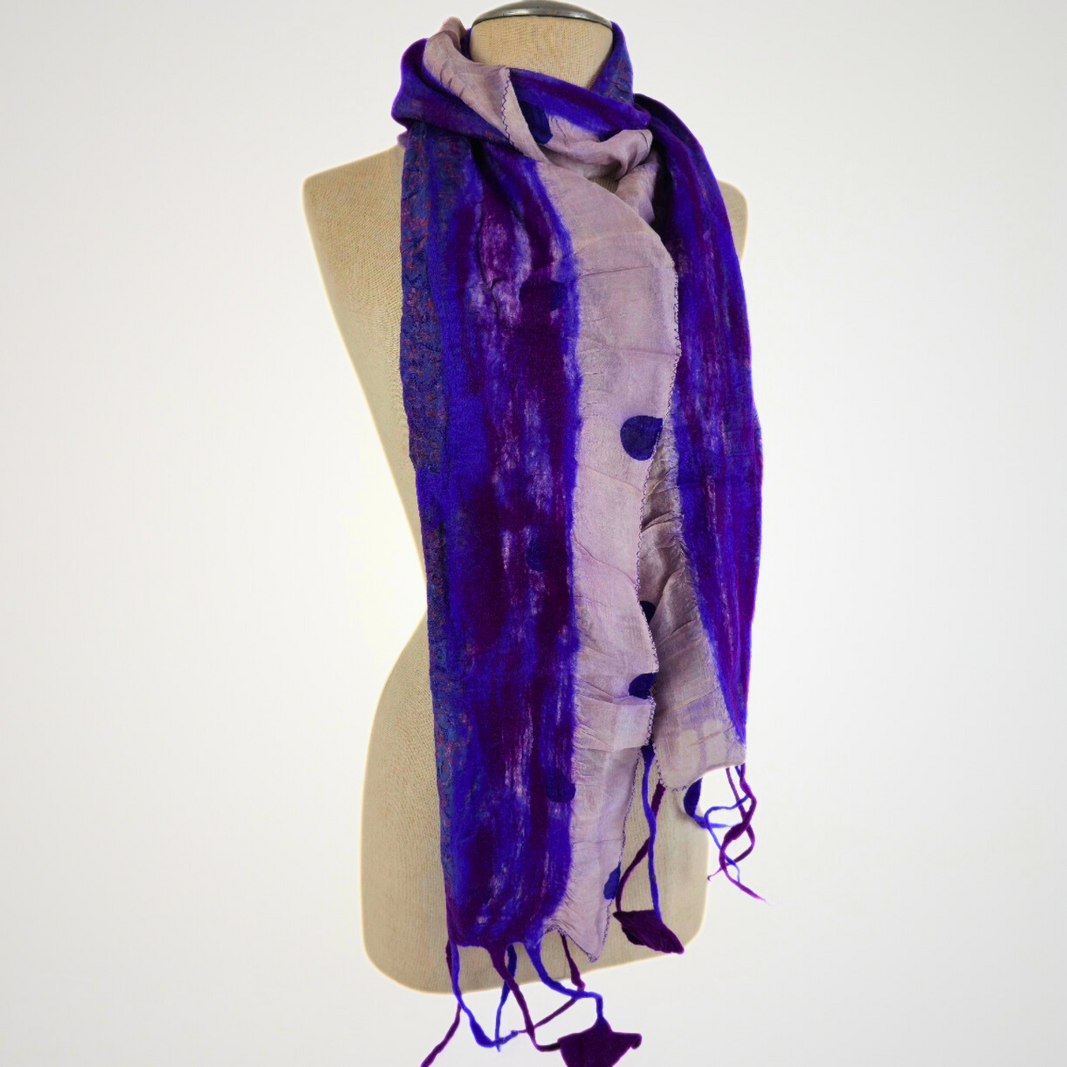 Blue Multi Polka Dotted Merino Wool Felted Scarf