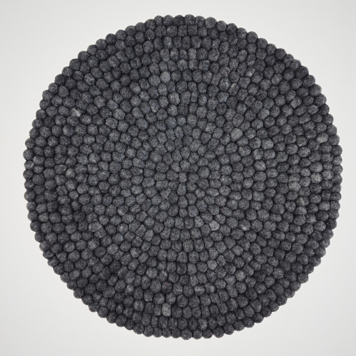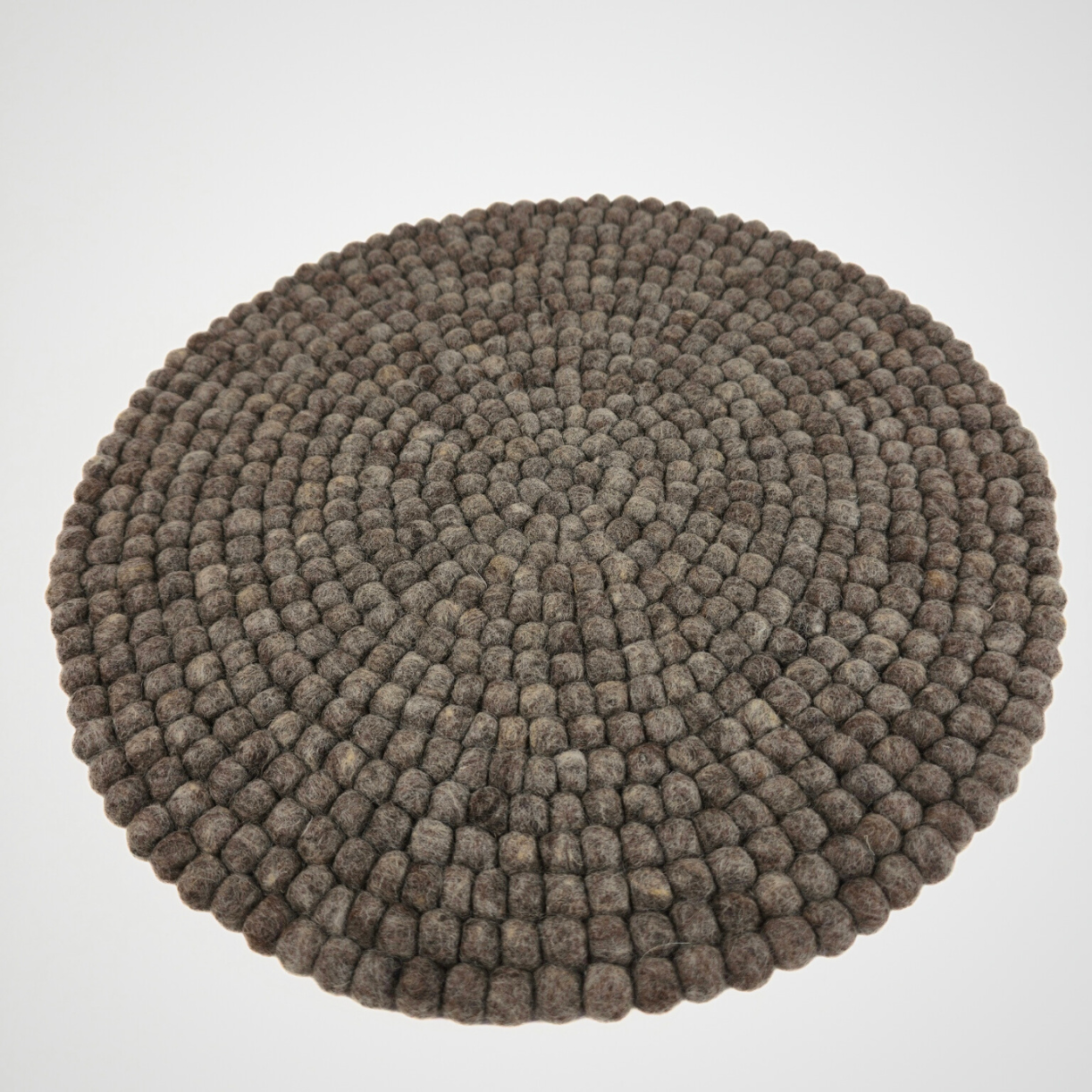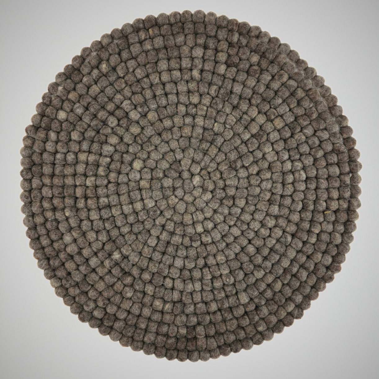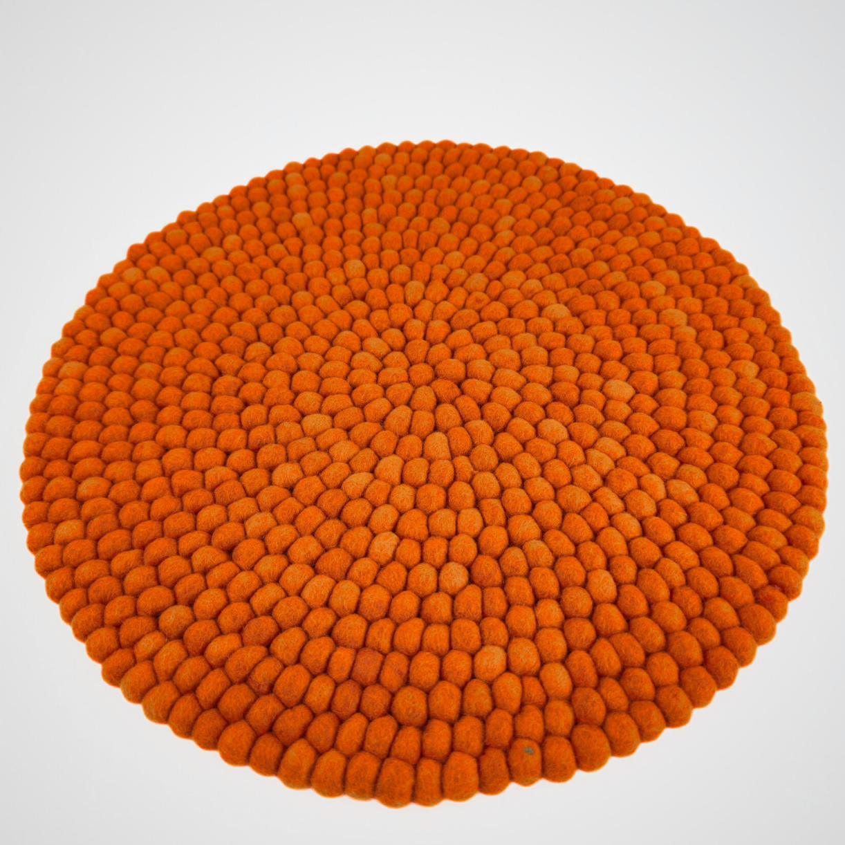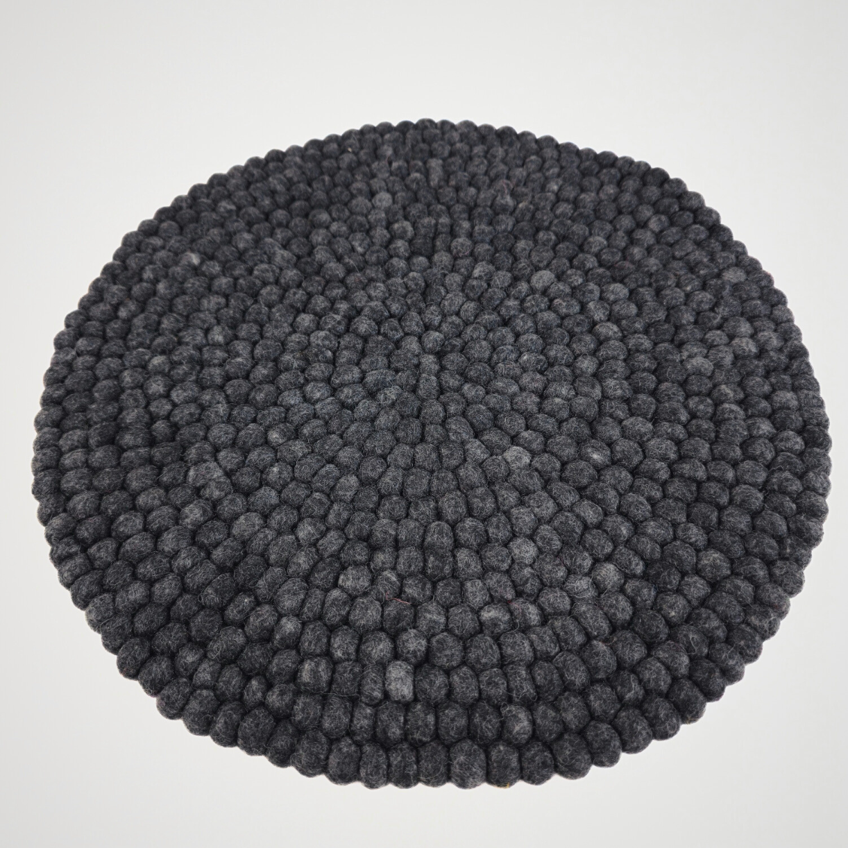 Handcrafted from soft felted wool, this 15.5-inch round pom pom mat brings charm and functionality to any space. Each colorful felt ball is carefully stitched together to create a sturdy, versatile piece that can be used as a placemat, chair mat, or decorative accent. Durable yet playful, it protects surfaces while adding a cozy, artisanal touch to your home décor.