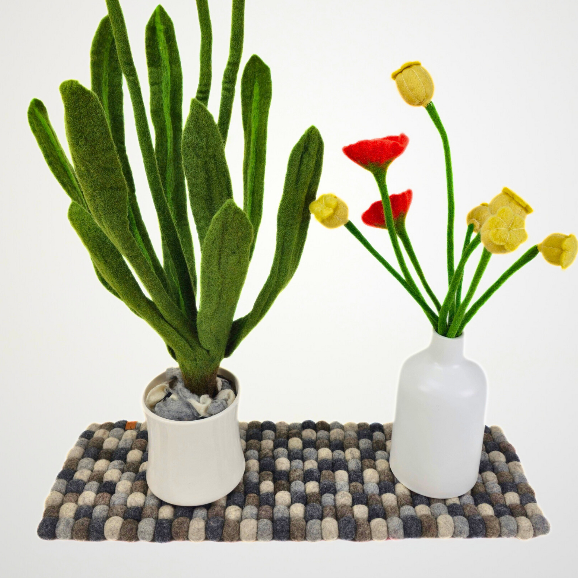 Discover our exquisite Handmade felted table runner, meticulously crafted from New Zealand Wool. Designed to safeguard your surfaces against heat, its durable construction ensures long-lasting protection. A sleek rectangle design, it's a perfect blend of form and function.