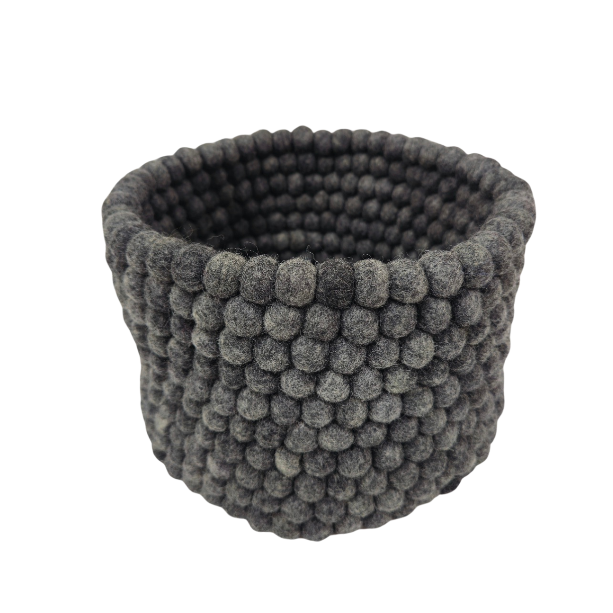 Charcoal Gray Soft and lightweight but strong and durable, this basket handmade from felt balls can serve many purposes around the home, office or classroom. Highlighted by a rainbow of colors, the handcrafted felt basket brightens and lightens up any room. Use it to small dog bed or store pens, paperclips, colored pencils, paintbrushes and more.