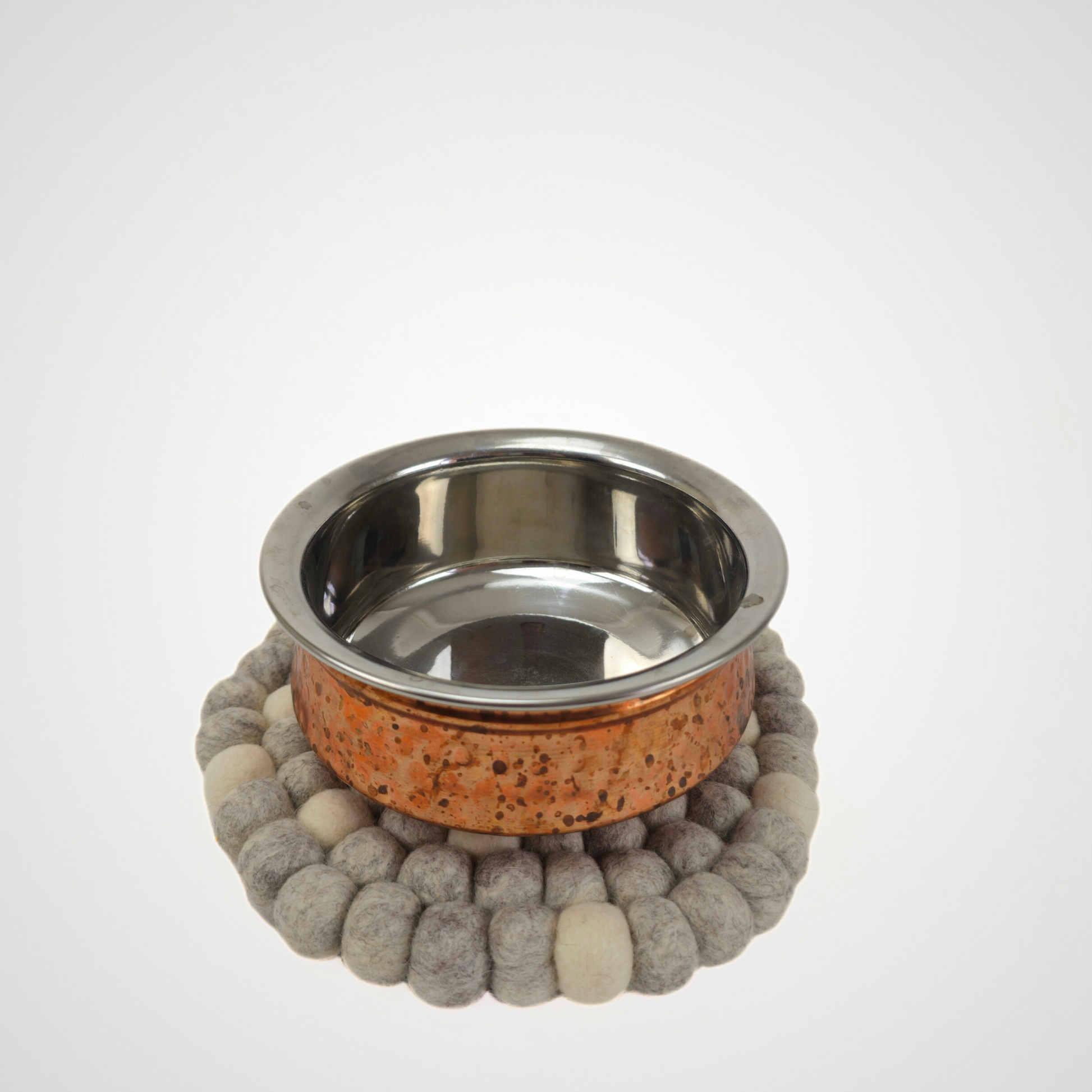 Light Gray & White Pom Pom Felted Ball Trivet-Set Of 2Pcs.