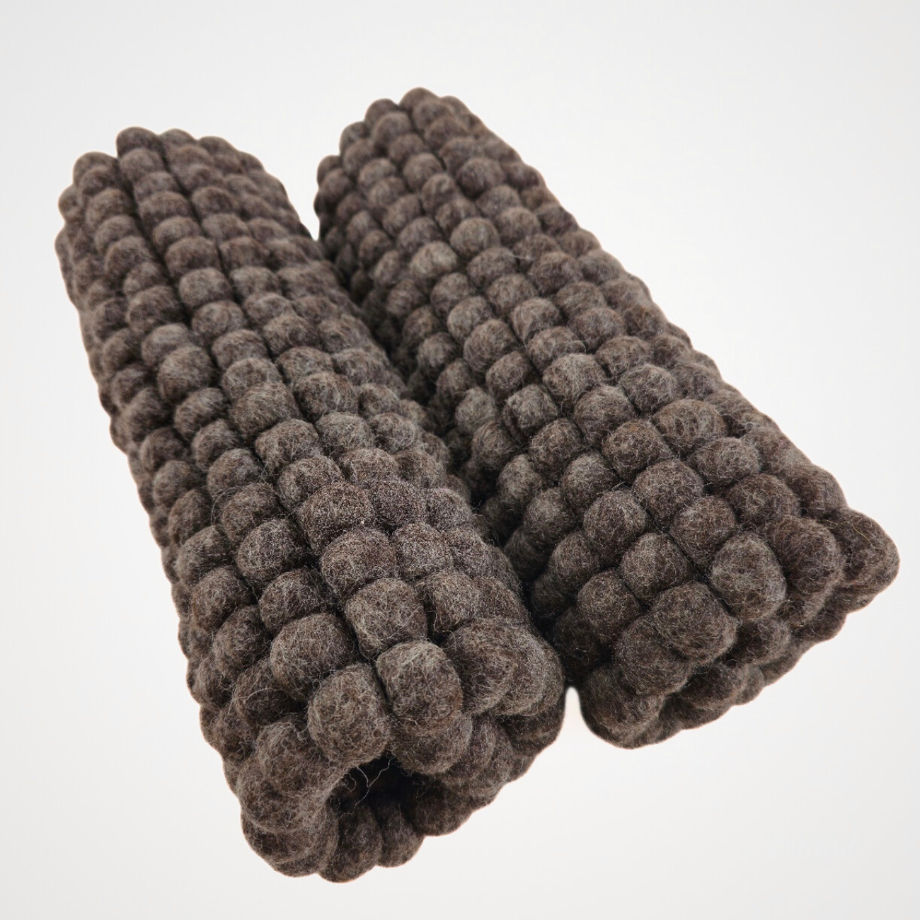 Handmade from soft felted wool, this 17x13-inch pom pom ball mat is both practical and eye-catching. Each felt ball is carefully hand-stitched, forming a durable and colorful surface perfect for use as a placemat, chair mat, or decorative table mat. Its natural wool texture adds warmth and charm, while also protecting surfaces from heat, scratches, and daily wear. A unique artisan touch for modern or traditional homes alike.