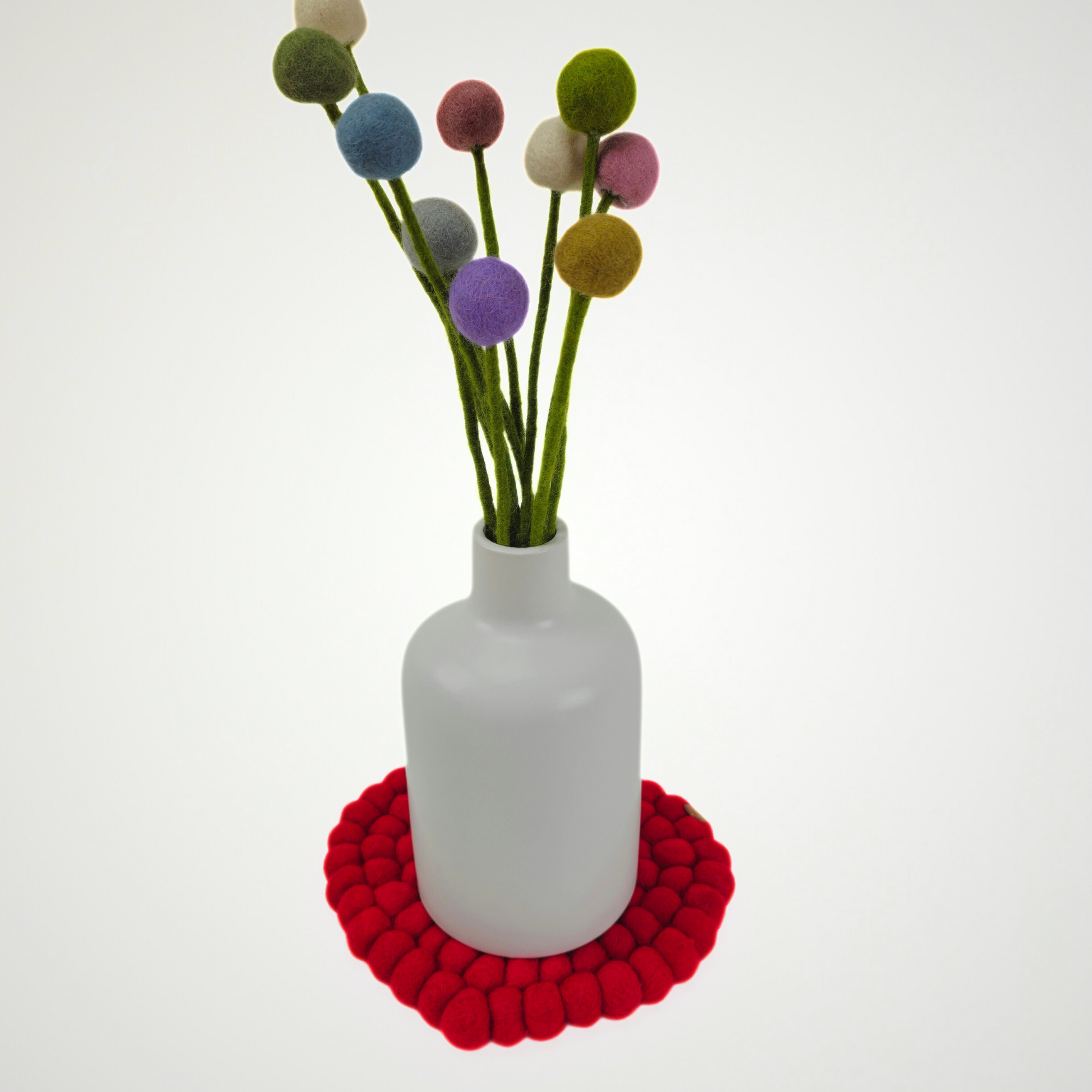 Red Heart Pom Pom Felted Ball Trivet-Set Of 2Pcs.